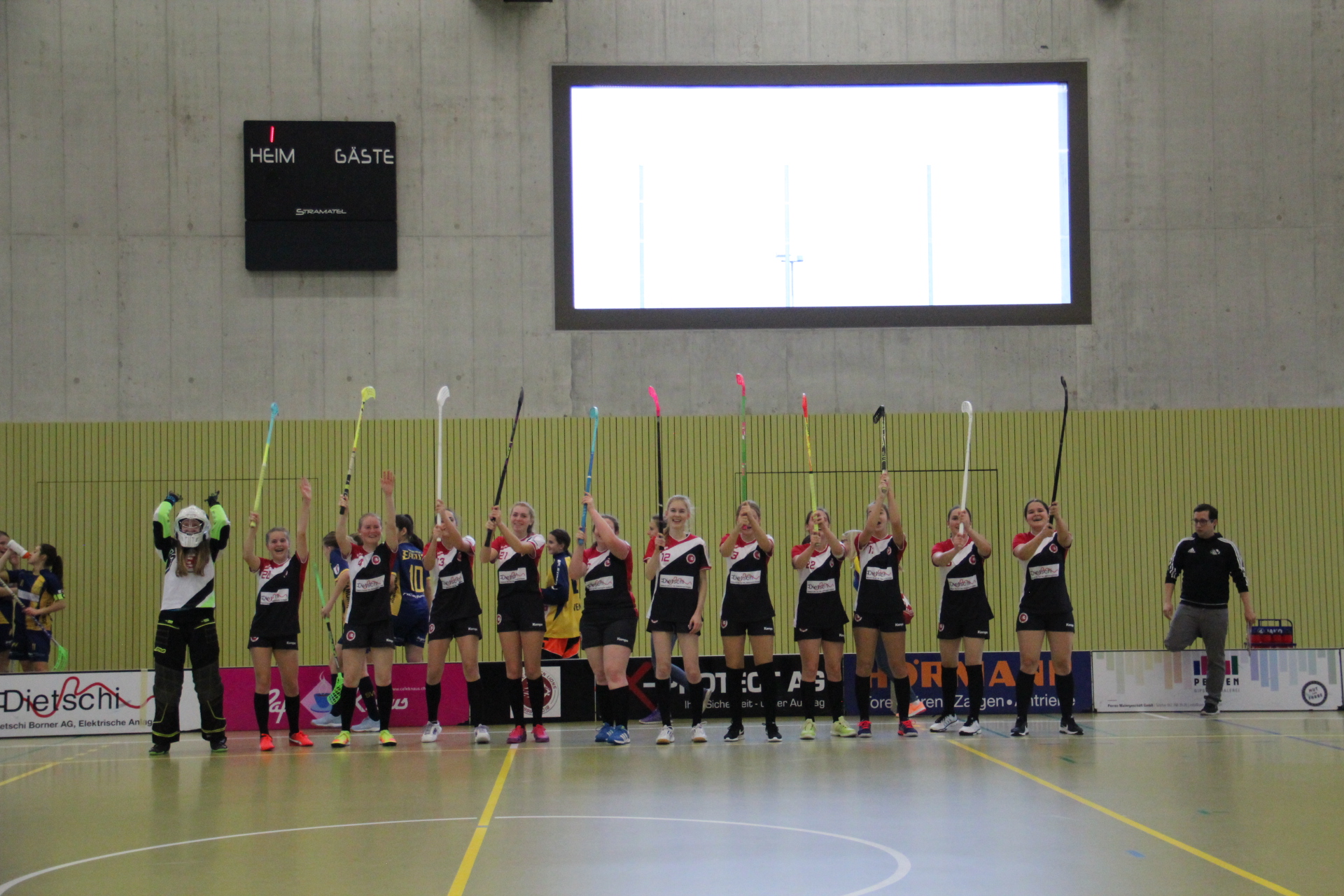 Wir starteten topmotiviert und sehr effizient in den ersten Match des Tages. Dank Meli (2x) und Raja stand es nach nur 4 Minuten 3:0 für uns. Die Eagles hatten einen Kaltstart erwischt, konnten dann aber das Score mit dem 3:1 ihrerseits auch eröffnen. Wieder Meli und anschliessend Sarah konnten aber unsere Vorsprung wieder auf ein 5:1 ausbauen. Danach war das Spiel wieder sehr ausgeglichen, auf beiden Seiten gab es grosse Chancen. Die führte bis zu Pause zu weiteren 6 Toren, 3 für die Eagles und 3 für die Lions (Julia, Luana, Mara H.). Direkt nach der Pause konnten die Waldenburger noch ein Tor nachlegen, doch dies war das letzte für sie. Danach spielten fast nur noch die Lions in der Offensive. Alles was man in den Trainings lernte wurde perfekt umgesetzt. So kamen am Schluss alle 11 Spielerinnen zu ihrem Einsatz und jede zeigte sich in super Form. Meli krönte sich mit 3 weiteren Toren zur Matchwinnerin und auch Luana und Sarah trafen das gegnerische Tor noch einmal. Ein rundum perfektes Spiel vor heimischen Kulisse.